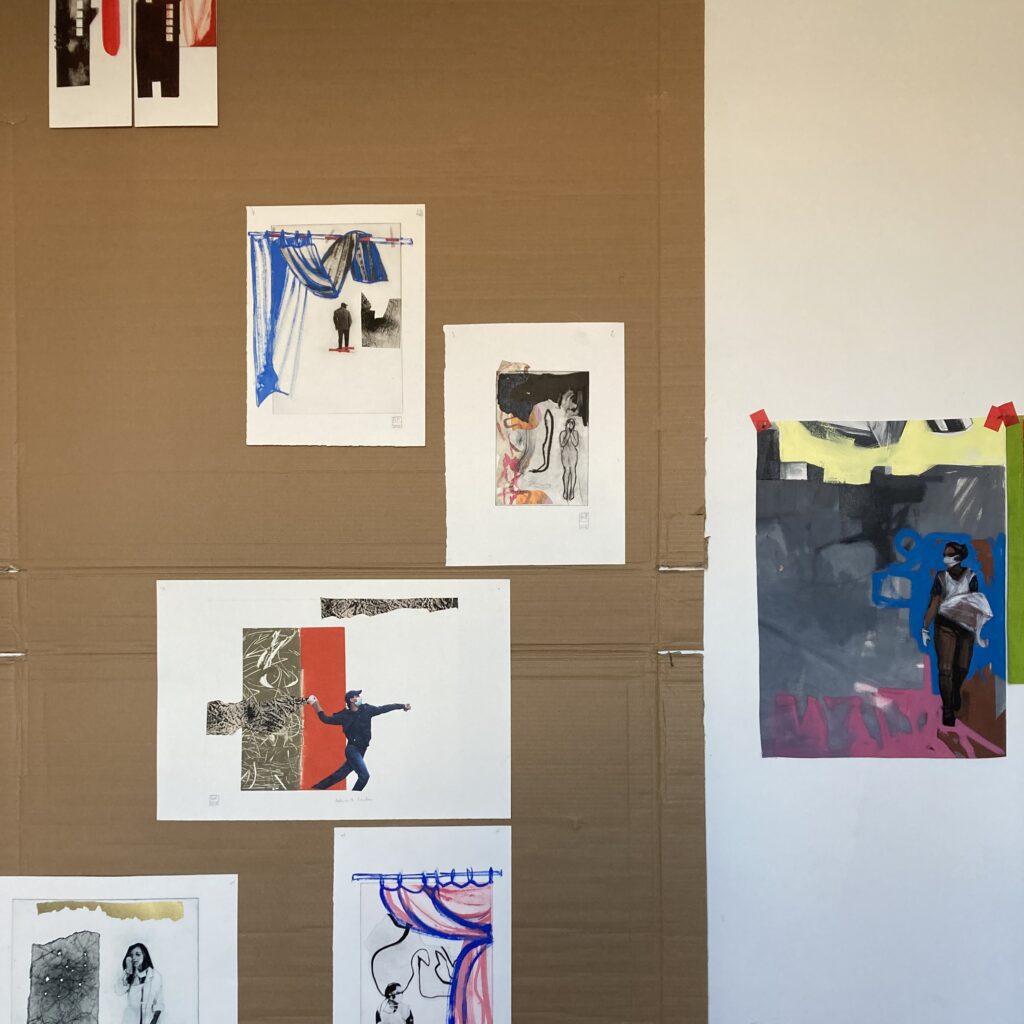 Monoprint, etching, collage + painting.